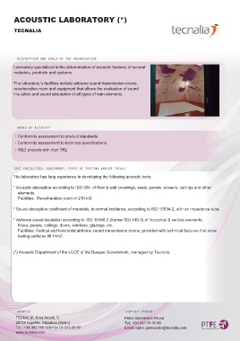 Facilities: Vertical and horizontal airborne sound transmission rooms, provided with technical features that allow
