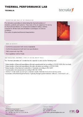 The Thermal Laboratory at Tecnalia has the capacity to carry out the following tests: